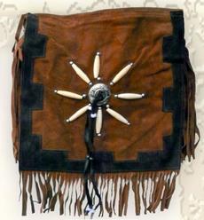 - Ledertasche #45 Umhängetasche aus feinem Wildleder, mit Conchos, Perlen, Lederfransen und Knochenröhrchen verziert. Ein langer Lederriemen sorgt für Tragekomfort. Maße: ... mehr >>>Running Bear39.95 EUR[inkl. 19% MwSt]
