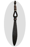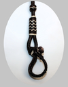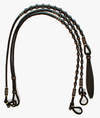 Romal-Zügel aus dunklem Rohleder, mit Rohhautverzierungen.