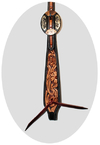 Westernzaum mit geradem Stirnband, aus gutem US-Leder, doppelt genäht, mit schöner Punzierung und Schnallen.
